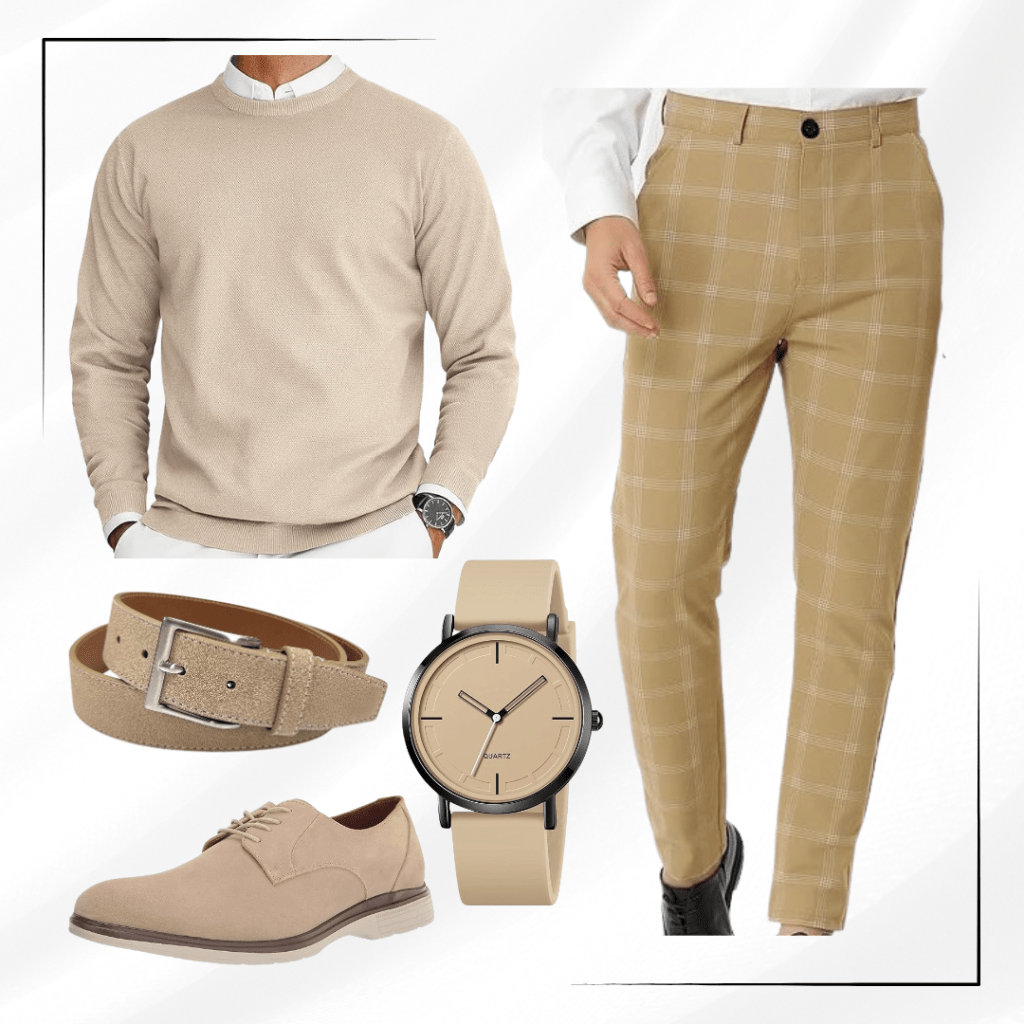 Khaki Sweater & Plaid Pants